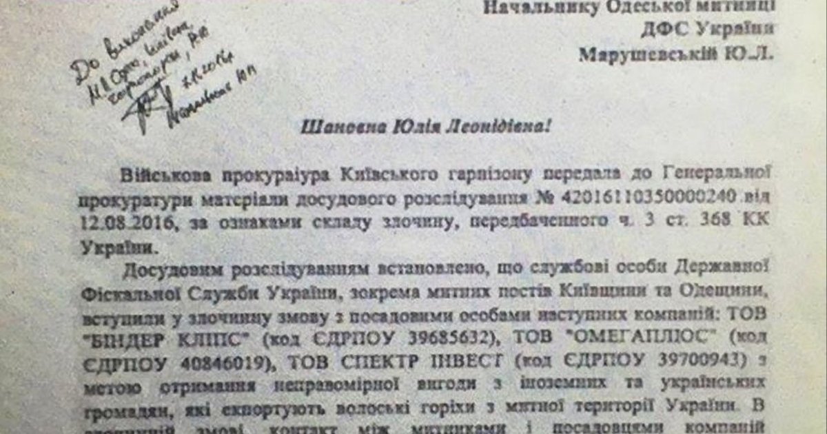 "Як відомо, зараз у розпалі сезон експорту волоського горіху. Компанії-конкуренти, що експортують волоські горіхи з митної території України, вдаються до фальшування листів на контролюючі органи, аби прибрати з ринку компанії-конкуренти. Зміст листа, його стиль та граматичні помилки говорять про його фальшивість.