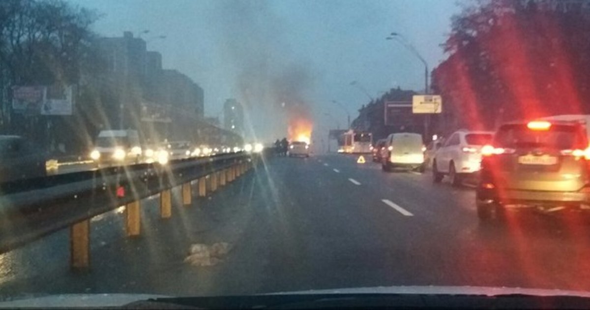Як передає Цензор.НЕТ із посиланням на паблік ВКонтакті "Київ Оперативний", на одній з головних магістралей столиці сталася ДТП, яка закінчилася пожежею.
