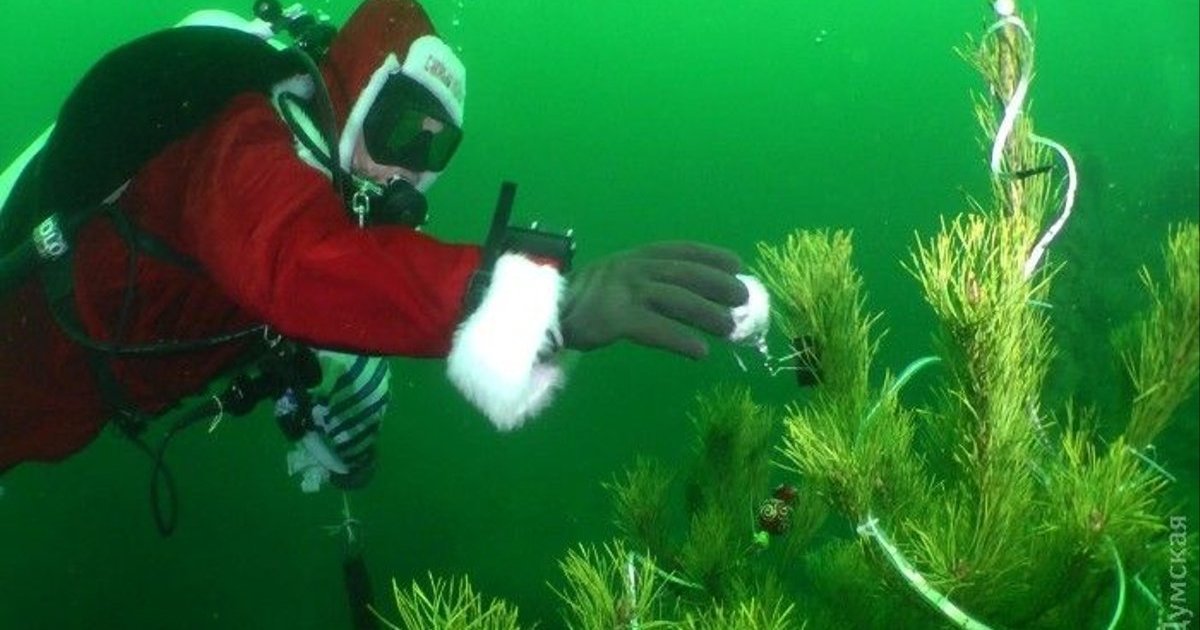 В Одеській затоці, у Чорному морі, майже на 20-метровій глибині дайвери встановили новорічну ялинку.