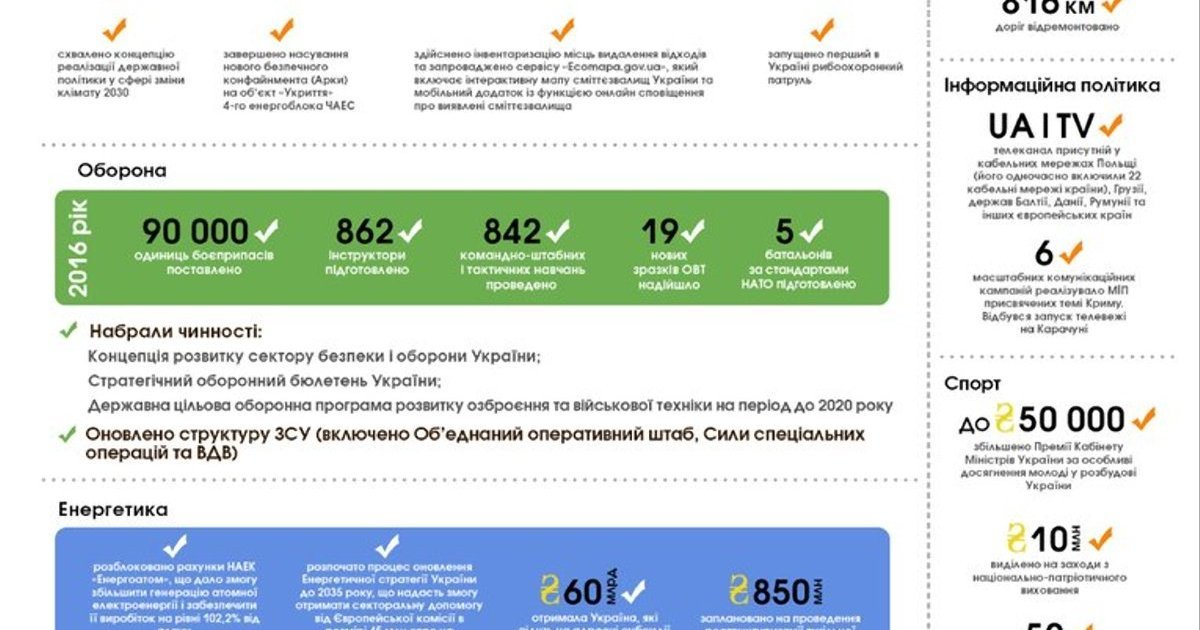 Кабмін оприлюднив список своїх головних досягнень у 2016 році. Інфографіка