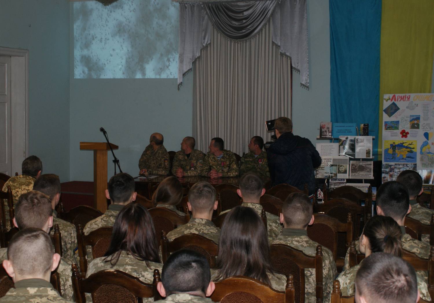 У Львові, в Будинку офіцерів відбулася зустріч "кіборгів", які обороняли Донецький аеропорт, із військовослужбовцями гарнізону, курсантами Національної академії сухопутних військ імені гетьмана Петра Сагайдачного, представниками громадськості.