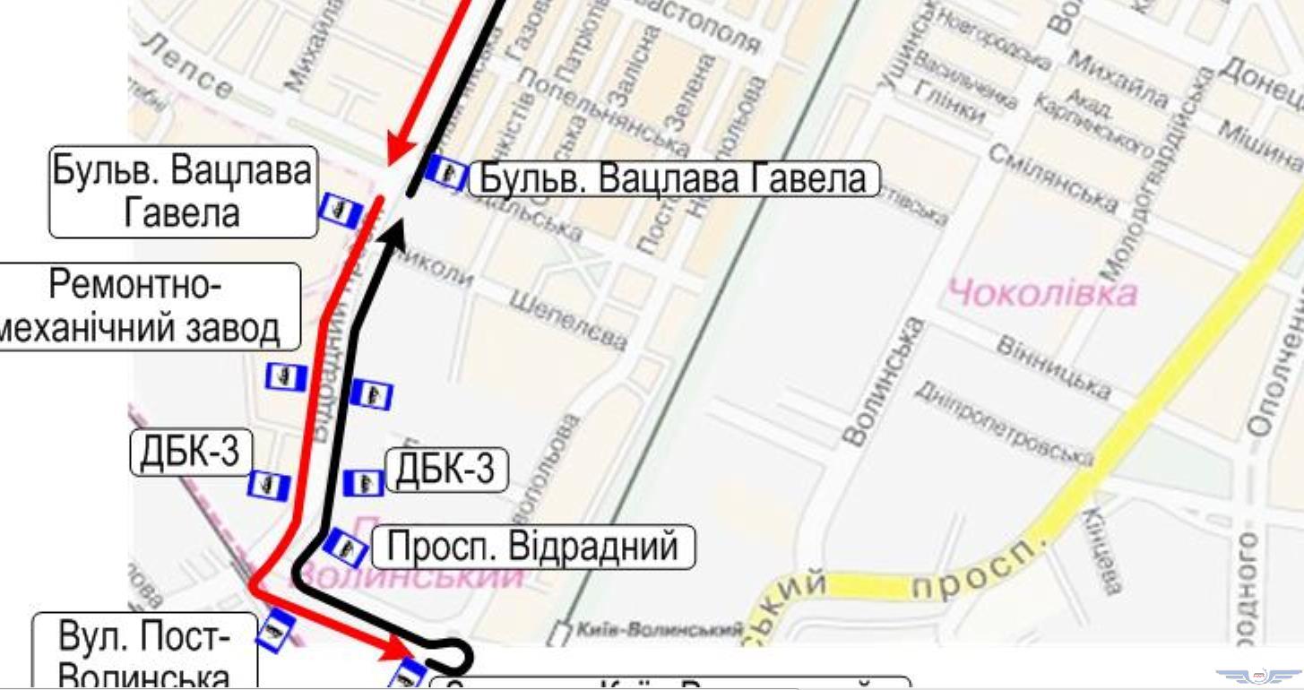 - трамваїв маршрутів №№ 14,15 по вул.Миколи Василенка в напрямку Автогенного заводу.
