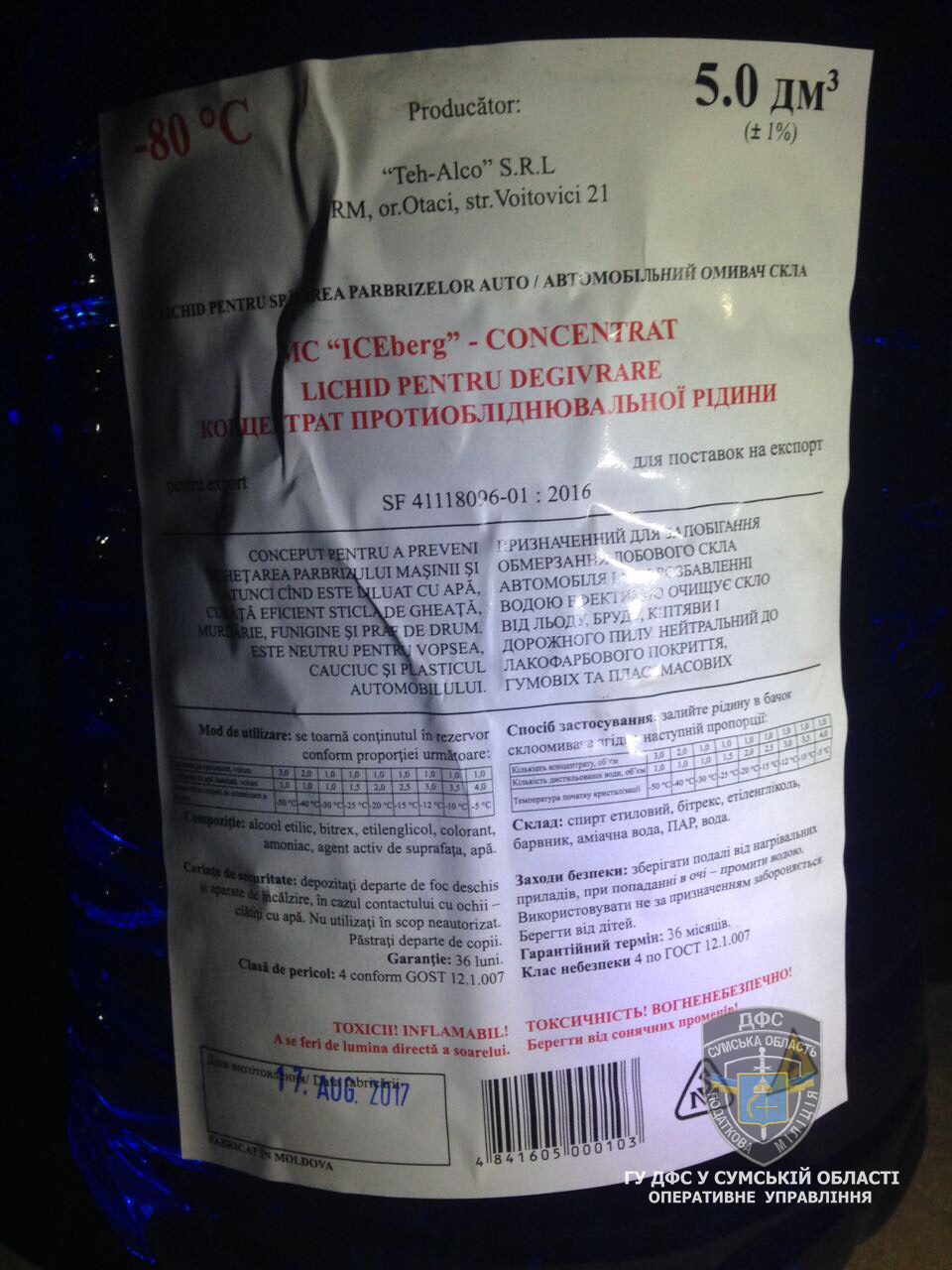 Про це повідомляє Цензор.НЕТ із посиланням на прес-службу Державної фіскальної служби.В ході операції "Акциз-2017" була встановлена група осіб, жителів області, які закуповували концентрат протиобліднювальної рідини виробництва Республіки Молдова, і в подальшому, шляхом її промислового очищення сірчаною кислотою, виробляли сурогатний спирт. Отриманий спирт планувалося використовувати для виготовлення фальсифікованого алкоголю.