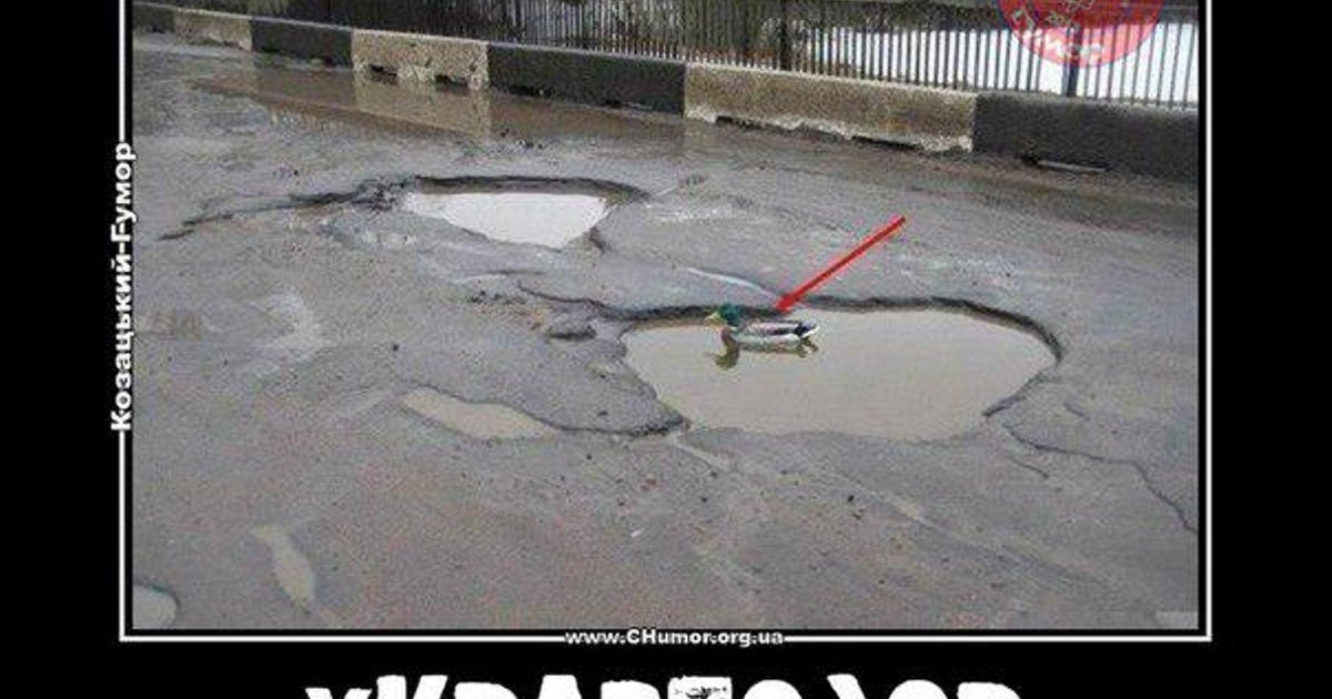 Блин, так как латают дороги, то вероятно, что вскоре утки будут там плавать вместе с выводком. Водитель, будь осторожен вдвойне!!!