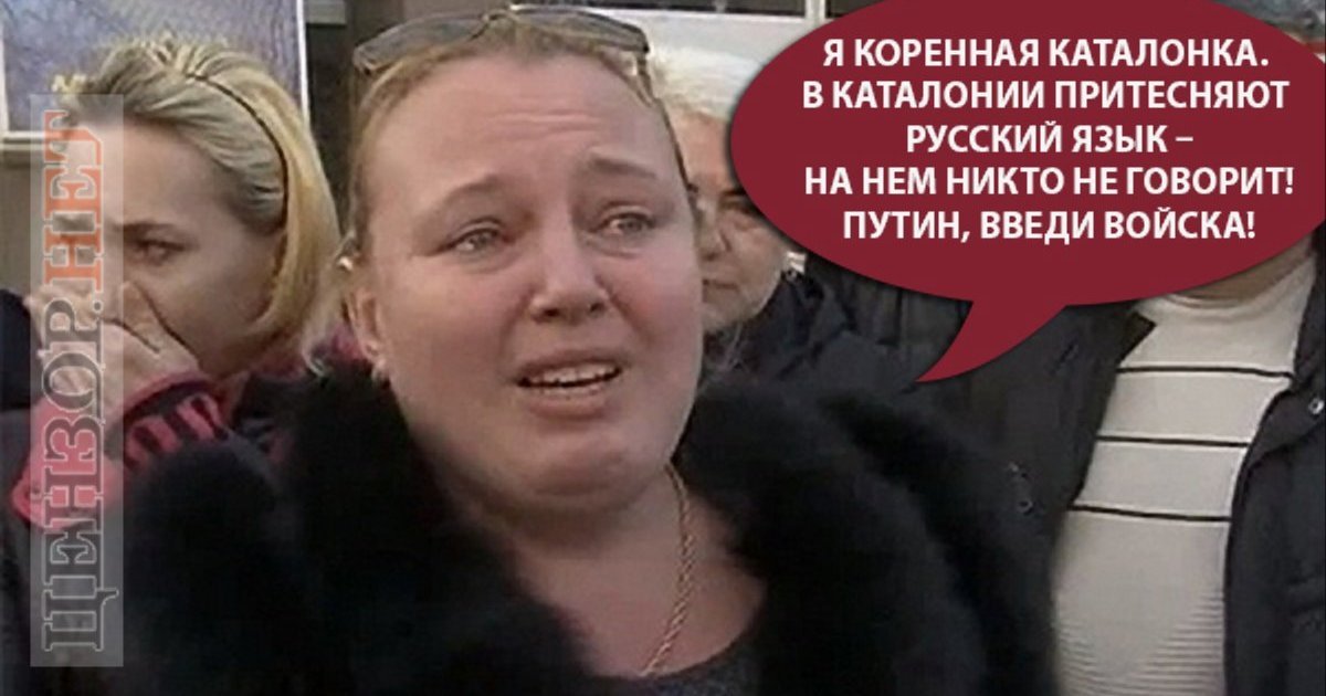 Корреспондент Раша-брехун-ТВ:"А теперь коренная каталонка расскажет всем расеянам про распятого полицаями испанской хунты на стене "участка для референдумов" руськаязычнаго мальчика в трусиках."