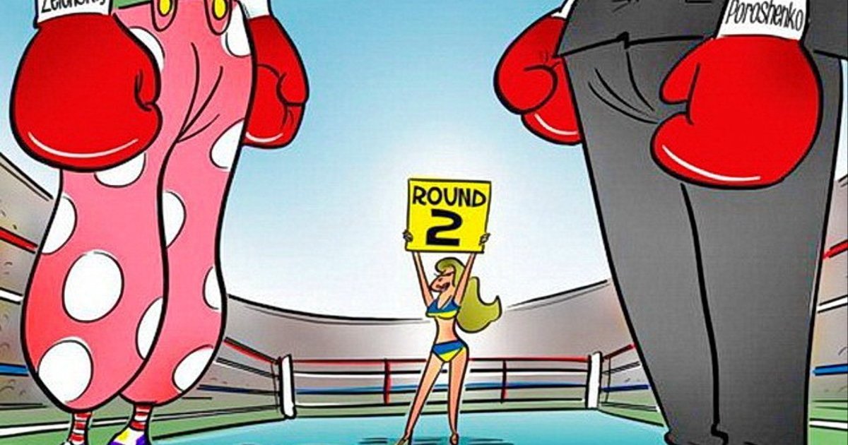 Прямо сцена из старого фильма СССР - "Борец и клоун" (у Порошенко - разряд по дзю-до).