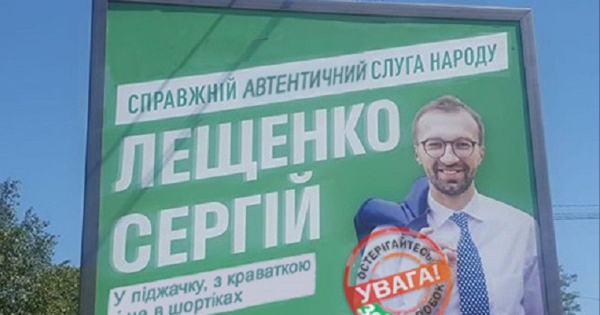 Інфопривід: Справжній слуга народу я, а не парашутисти, які намагаються під таким брендом потрапити в парламент, - Лещенко про свої борди в стилістиці партії Зеленського. ФОТО