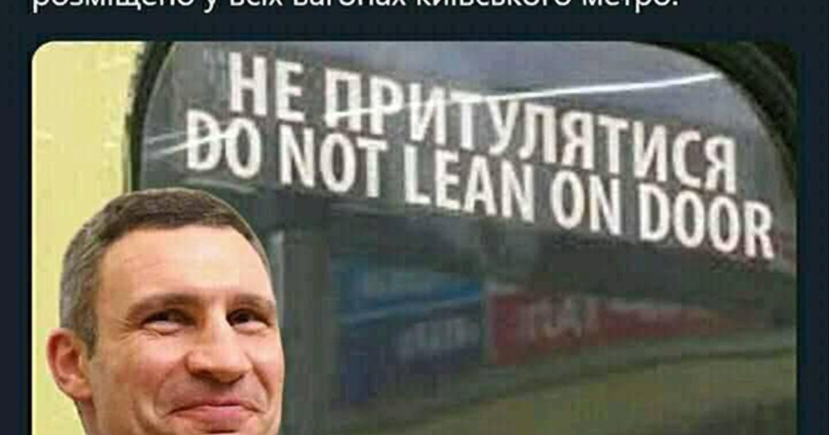 А яка фраза була на дверях вагонів метро, написана до Притули, Кличка?... Після того, як в Україні стали переходить на державну мову (тобто, після 1991-го)?... Саме така фраза і була написана...