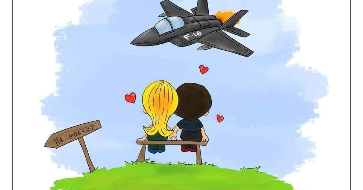 Картинка влучна та гарна, але ж F-16 має 1 двигун та 1 кіль. Але коли цих літаків буде у нашому небі більше, тоді й зображуватимемо їх вірніше!
