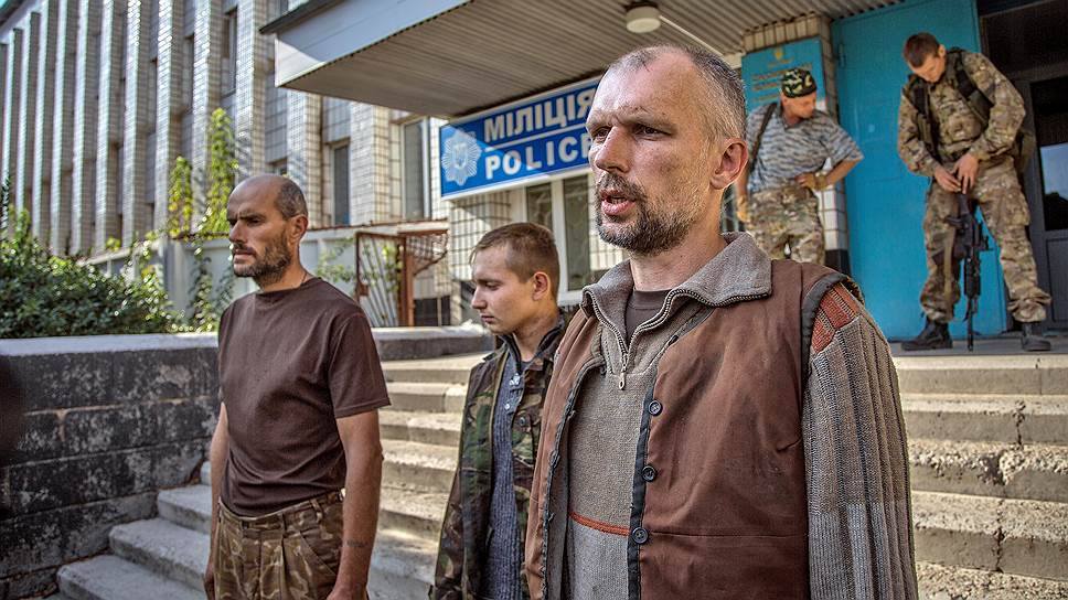Алексей Кириченко (первый справа) в плену российских наемников.