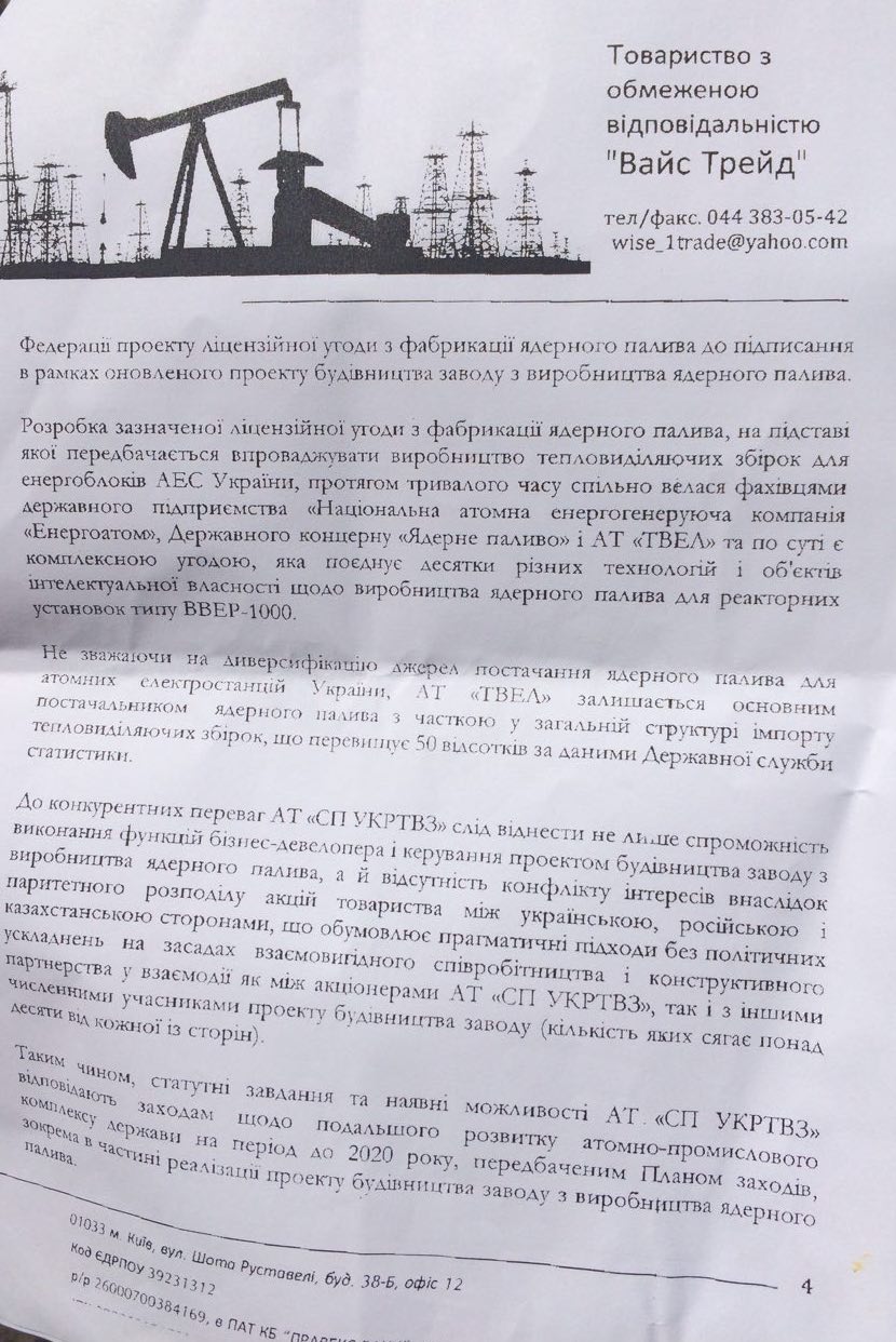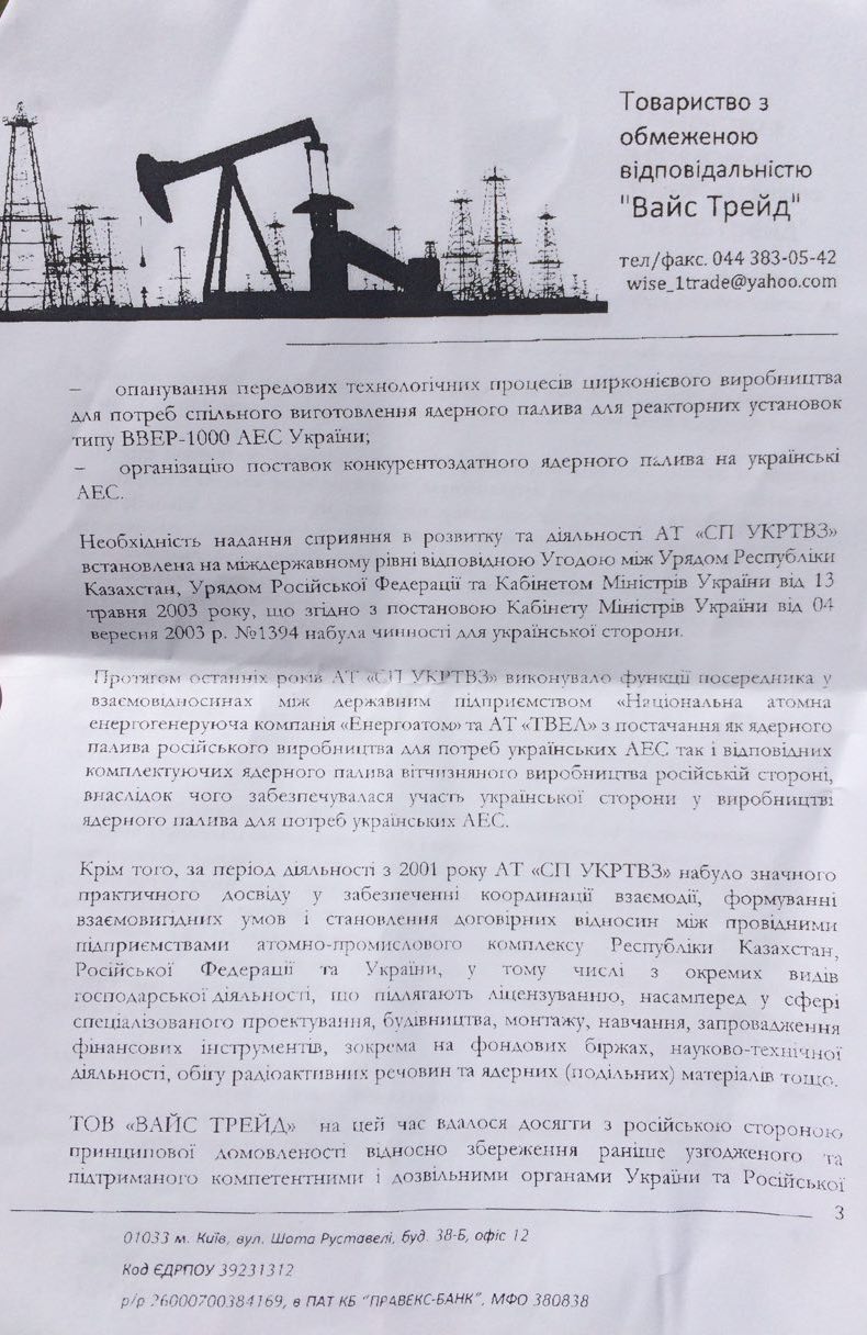 Згодом сплили факти, які передували скандалу. Виявилося, що за місяць до листа Насалика, а саме 30 травня, приватна компанія "Вайс трейд", що тепер представляє Україну у спільному україно-російсько-казахському підприємстві, зверталася до Міністерства. У їхньому листі не йдеться ні про китайського, ані про іншого інвестора. "Вайс трейд" "засвідчує наявність у товариства та її партнерів необхідних фінансових ресурсів, досвіду ділових зв'язків для забезпечення практичної реалізації цієї амбітної мети, на підставі чого повідомляє про свою зацікавленість як потенційного інвестора в участі у зазначених переговорах".