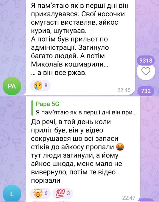 В цей же час наближені до ОП телеграми та блогери запустили дискусію, що насправді має нести відповідальність за трагедію мер. Водночас, прихильники мера нагадали, що в нас є ще голова військової аміністрації Попко, який 17 травня обіцяв, що закритих укриттів не буде, і їхню перевірку.
