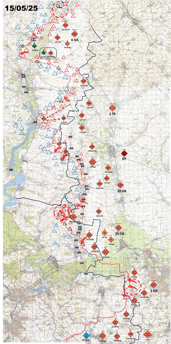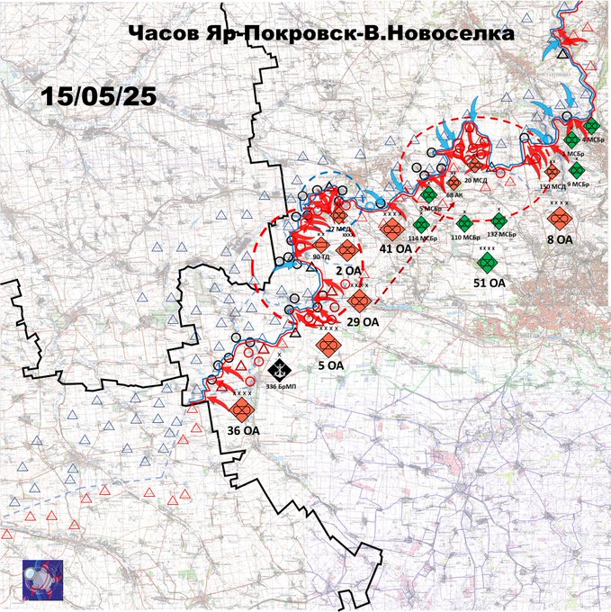 Торецьк "стоїть". Часів Яр також. Тобто всі так звані "резерви" фронту в рашистів з'являються лише з допомогою перегрупувань. На скільки вистачить РОА таких "шашок" покаже час. Але вже зараз зрозуміло, що рашистський наступ за термінами і строками виконання завдань сильно провалюється. РОА бігає по "сіряку" і займає лише повністю зруйновані позиції.