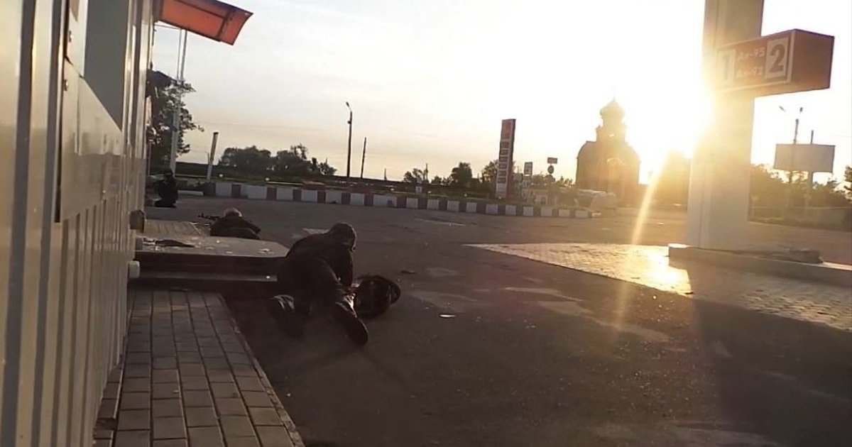 Фото я сделал как скрины с видео, которое снимал Пиксель - Александр Куксенко. Единственный среди нас, у которого тогда не было оружия. Вообще никакого! Он снимал видео с целью запечатлеть факт вооруженного сопротивления агрессору для поднятия боевого духа в Вооруженных силах Украины!