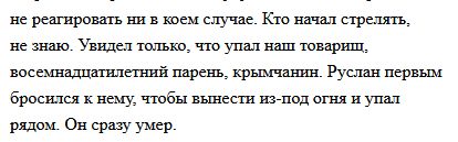 Все российские СМИ практически мгновенно опубликовали со ссылкой на бандита Аксенова информацию о том, что стрелял приехавший из Львова 17-летний снайпер из "Правого сектора", который спровоцировал конфликт и стрелял в обе стороны. Его якобы уже задержали на месте преступления. Новость облетела все российские СМИ, телеканалы и информагентства: еще бы, такие точные сведения. Но где же этот подлый отмороженный "нацик"?! Прошло три года, но с тех пор никаких упоминаний о пойманном снайпере нет. Не показали его, не сказали, не судят. Как же так? Почему же российские СМИ столь безразличны, почему не интересуются судьбой преступника, его наказанием? Никаких публикаций на эту тему нет.