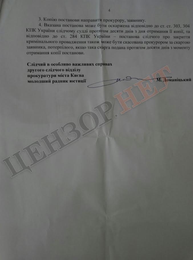 Цю інформацію Цензор.НЕТ, підтвердив і сам Олег Семінський. Хоча офіційно у ГПУ повідомляють, що справа не закрита і перебуває під контролем керівництва.