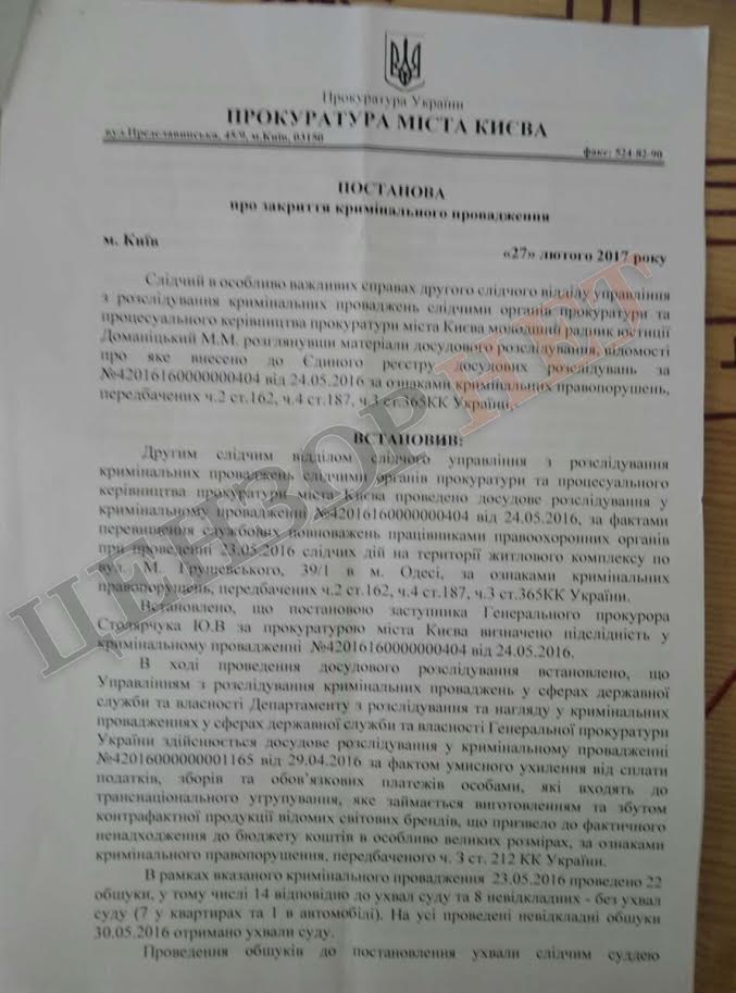 З листа ГПУ, що є в нашому розпорядженні, нам відомо, що ГПУ розслідувала провадження № 42016000000001165 від 29.04.2016 за ч.3 ст.212 – умисне ухилення від сплати податків та зборів в особливо великих розмірах членами транснаціонального угруповання, яке займається виготовленням та збутом контрафактної продукції відомих світових брендів.