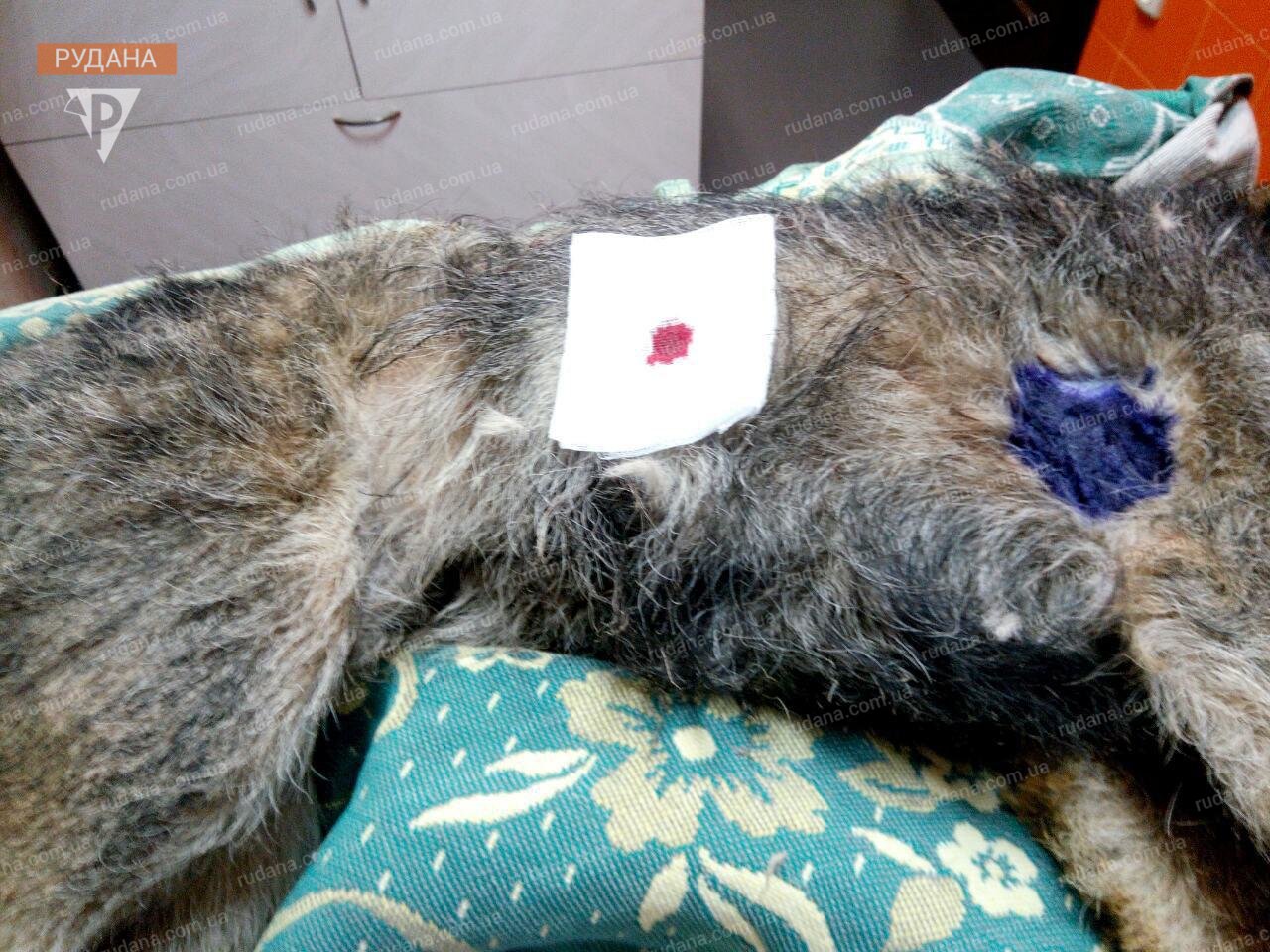 За словами свідка, бідна тварина самостійно на передніх лапах відповзла від вогнища, далі пересуватися вже не змогла. Разом із сином Микола відвіз собаку до ветлікарні. Хірург виявив дві великі колоті рани і безліч інших, гематому та пошкодження сечового міхура. Рани собаці обробили та зробили рентген.