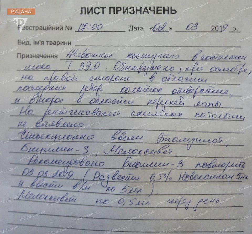Висновок ветеринарного лікаря про травми Капловухого