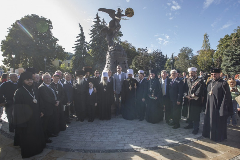 Разом із мером Києва композицію урочисто відкрили сучасні захисники України: ветеран АТО з позивним Ірландець Володимир Сергієвський, начальник караулу 12-ої Державної пожежно-рятувальної частини Києва Руслан Черкасов та лікарка-інфекціоністка Олександрівськові лікарні Тетяна Гайнутдінова. Також на церемонії були присутні представники всіх релігійних конфесій столиці.