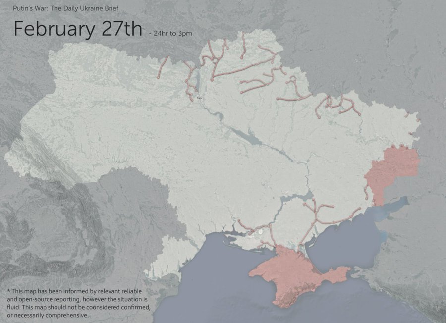 Внимание, если меня читают СМИ! Вы часто демонстрируете неверную карту российского вторжения в Украину. Вы показываете чуть ли не захваченные области, но это не так. Враг продвигается по трассам к городам, но на территории у него не хватает ресурсов! Не обманывайте читателей!