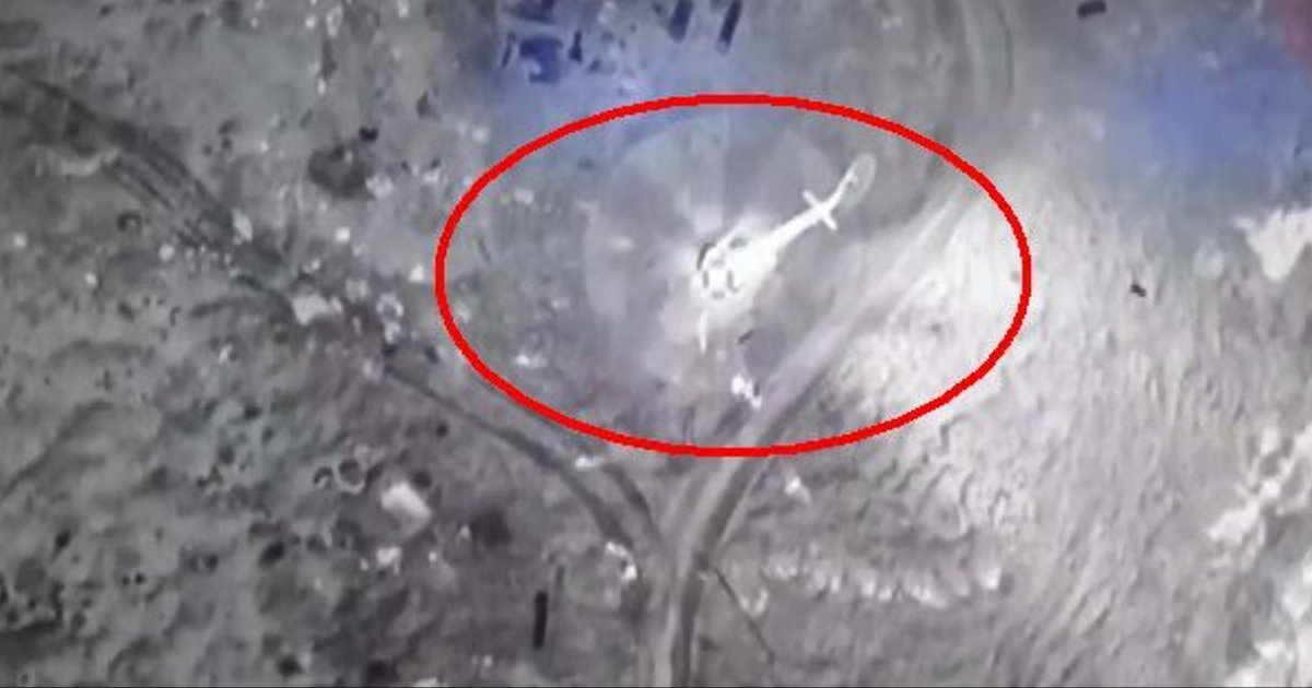 Як повідомляє Цензор.НЕТ, на відеозапису, що опублікували українські воїни видно, що на землі поблизу вертольота перебувало кілька окупантів.
