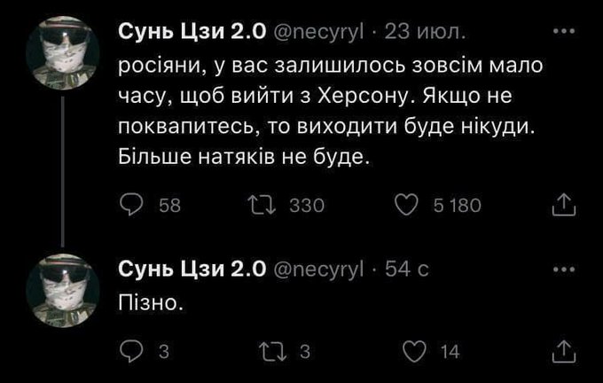 Хоч які б вони мали плани – ми їх зламаємо. І будемо звільняти нашу територію воєнними, дипломатичними та всіма іншими доступними інструментами, поки не вийдемо на законні кордони України", - зазначається у повідомленні.
