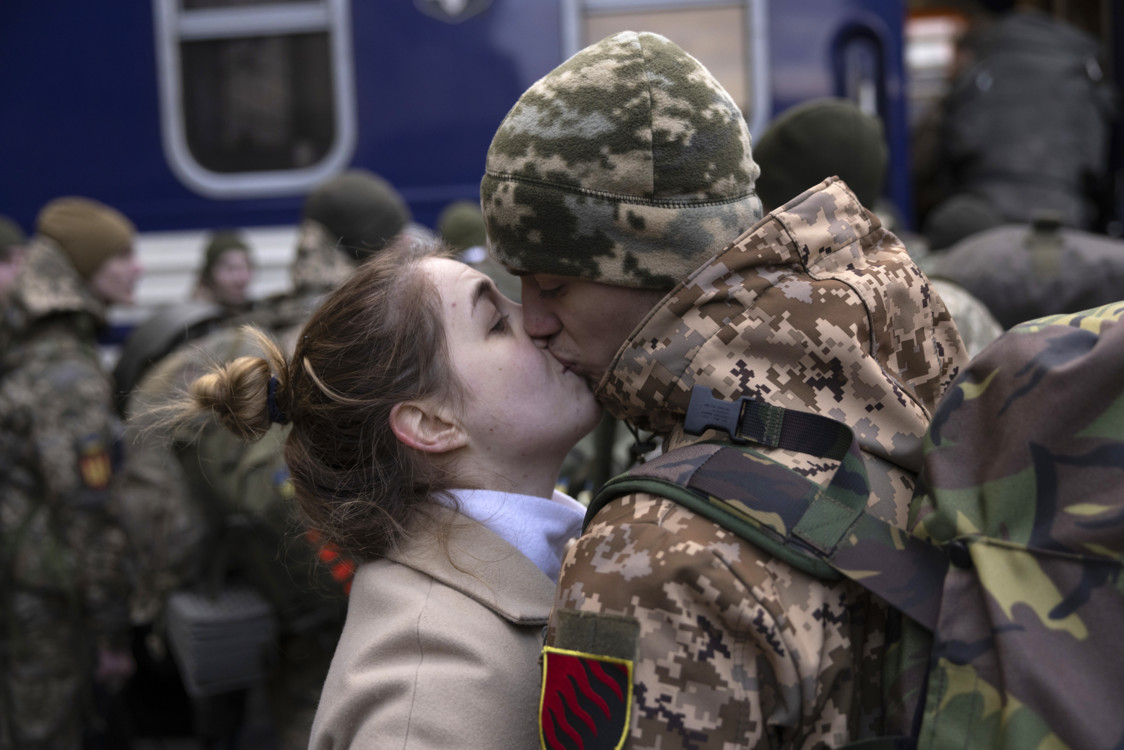 Майбутні російські військовослужбовці допомагають п’яному чоловіку вдягнути штані.