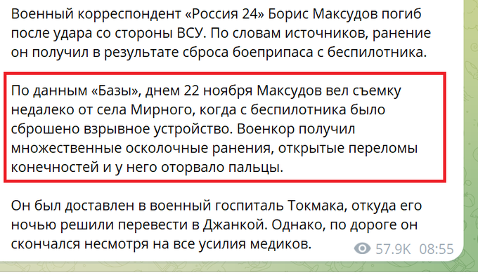 На тимчасово окупованій території Запорізької області ліквідовано російського пропагандиста з "Россия 24" Бориса Максудова.