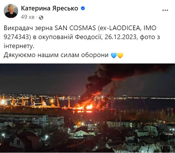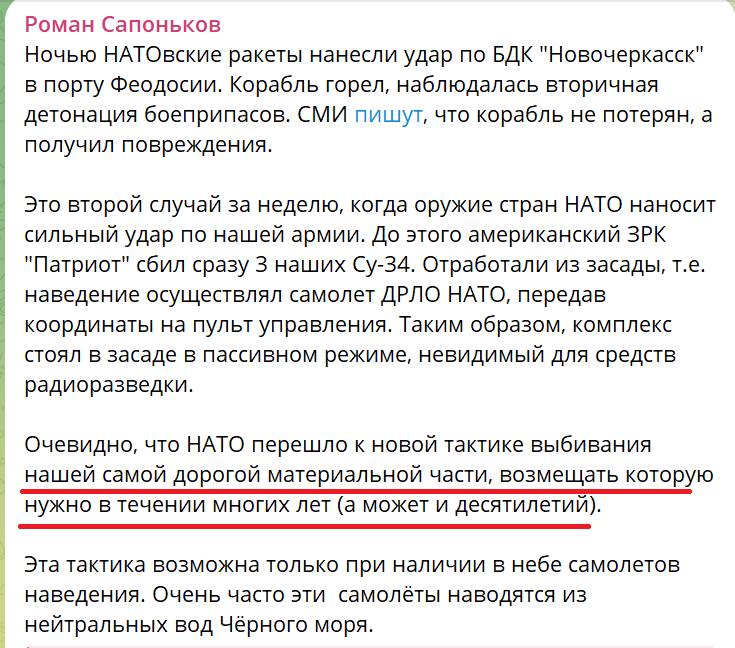 Як повідомлялося, внаслідок атаки знищено великий десантний корабель ЧФ РФ "Новочеркаськ".
