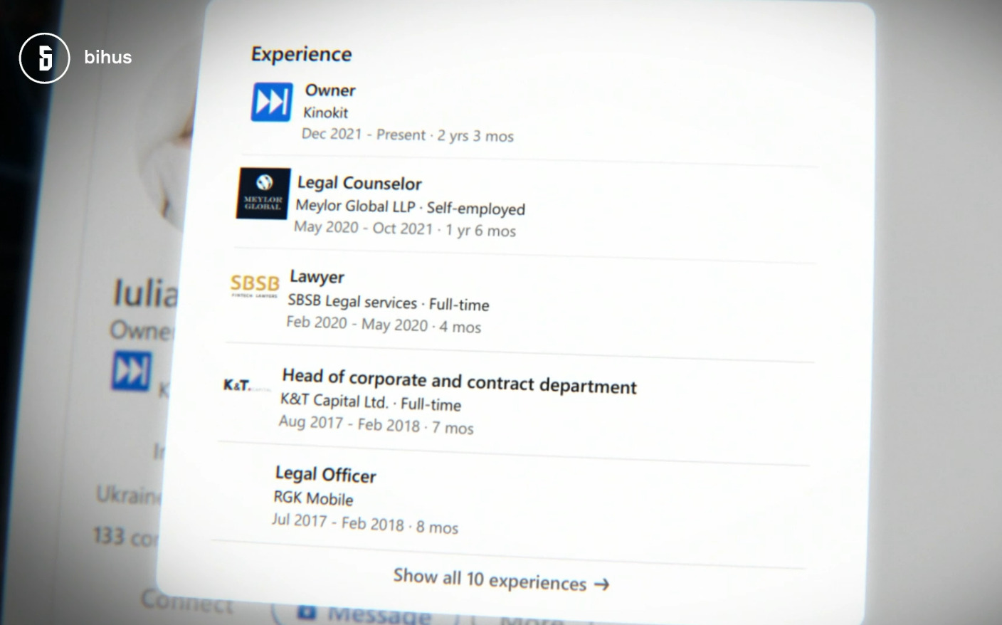 Власниця компанії "Кінокіт", яка третій рік поспіль отримує мільйонні підряди від державного телеканалу "Рада", була юридичною радницею фірми Тімура Міндіча – колишнього бізнес-партнера Володимира Зеленського. Інформацію про півтора роки співпраці з цим бізнесом Юлія Дроздова зазначила у своєму профілі в LinkedIn – соцмережі для ділового спілкування, пошуку співробітників та відкритих вакансій.