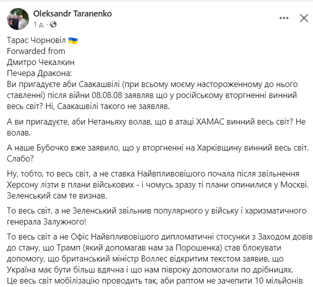 Закликає той що ракети в асфальт закатав, Чонгар розмінував, армію недофінансував, ітд..