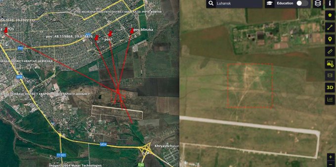Проте, OSINT-дослідник https://x.com/neonhandrail/status/1795174844276817957?s=46&t=p6IYUMzZ2xJQbS8hxtj5sw Neonhandrail , геолокувавши місце прильоту в Луганську, стверджує, що це не корпус авіаційного училища, а "територія аеродрому поряд із Музеєм авіації.