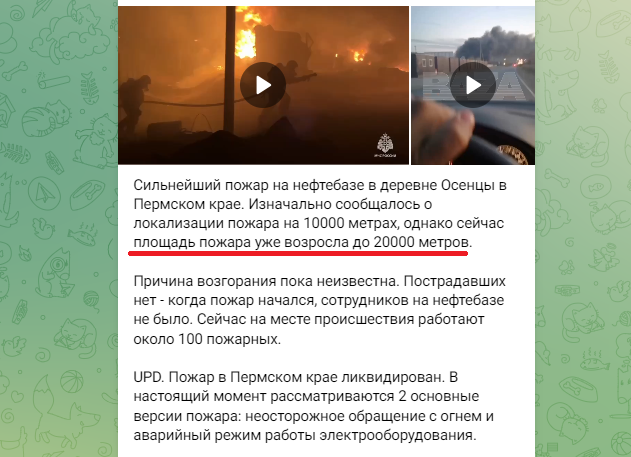 У Пермській області РФ палає приватна нафтобаза. ВIДЕО