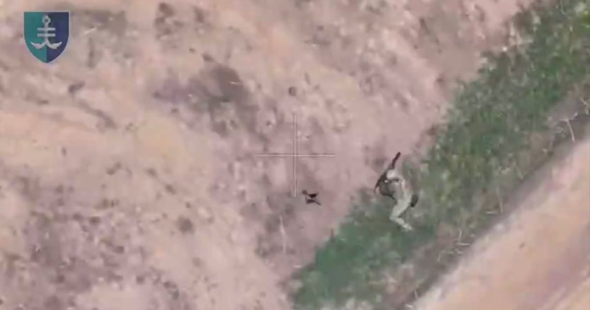 На одному з напрямків фронту воїни 35-ої окремої бригади морської піхоти імені контрадмірала Михайла Остроградського завдали прицільного удару по російському солдату, який намагався відбити дрон з неба.
