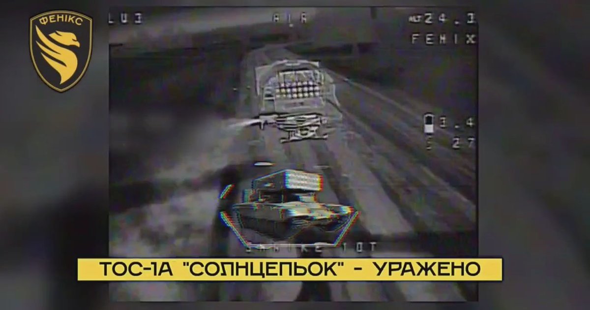 Знищено вогнеметну систему залпового вогню ТОС-1А "Сонцепьок" та пускову установку БпЛА "Молнія". ВIДЕО