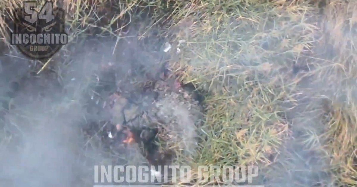 Як повідомляє Цензор.НЕТ, окупанта було ліквідовано точним скиданням боєприпасу з дрона. Мертвий загарбник так і залишився лежати, заплутаним у траві.
