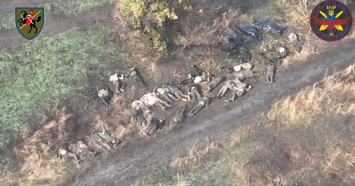 Аеророзвідка 110-ї окремої механізованої бригади ЗСУ зафіксувала збір тіл російських штурмовиків на одному з напрямків.