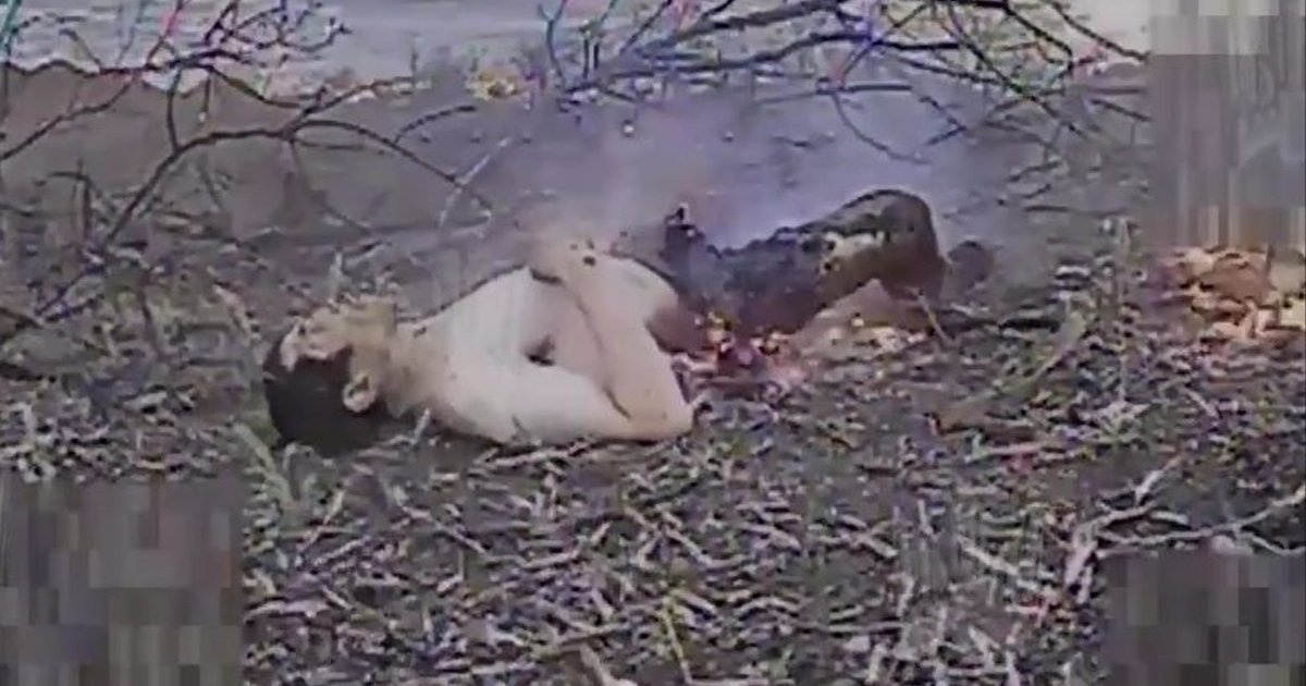 Охоплений полум’ям окупант лежить серед степу. ВIДЕО 18+