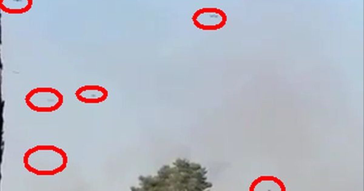 Як повідомляє Цензор.НЕТ, на записі видно, що у небі шугає щонайменше півтора десятка дронів, які вичікують на ворога.