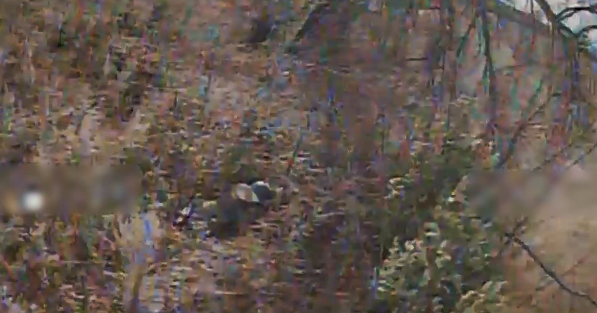 На одному з кадрів видно, як БпЛА влучає в спину ворогу, який розвалився на траві. Український дрон розірвав його на частини.