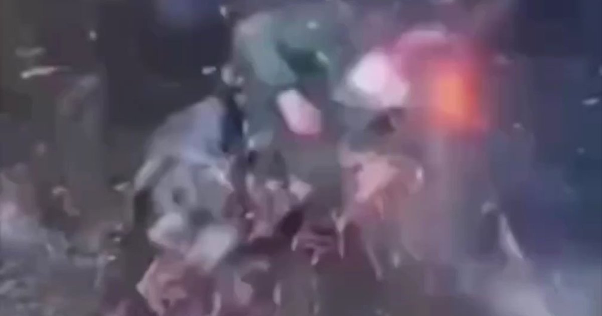 Дрон влучив в голову загарбнику, який лежав на землі. В результаті - та розлетілася в різні сторони.