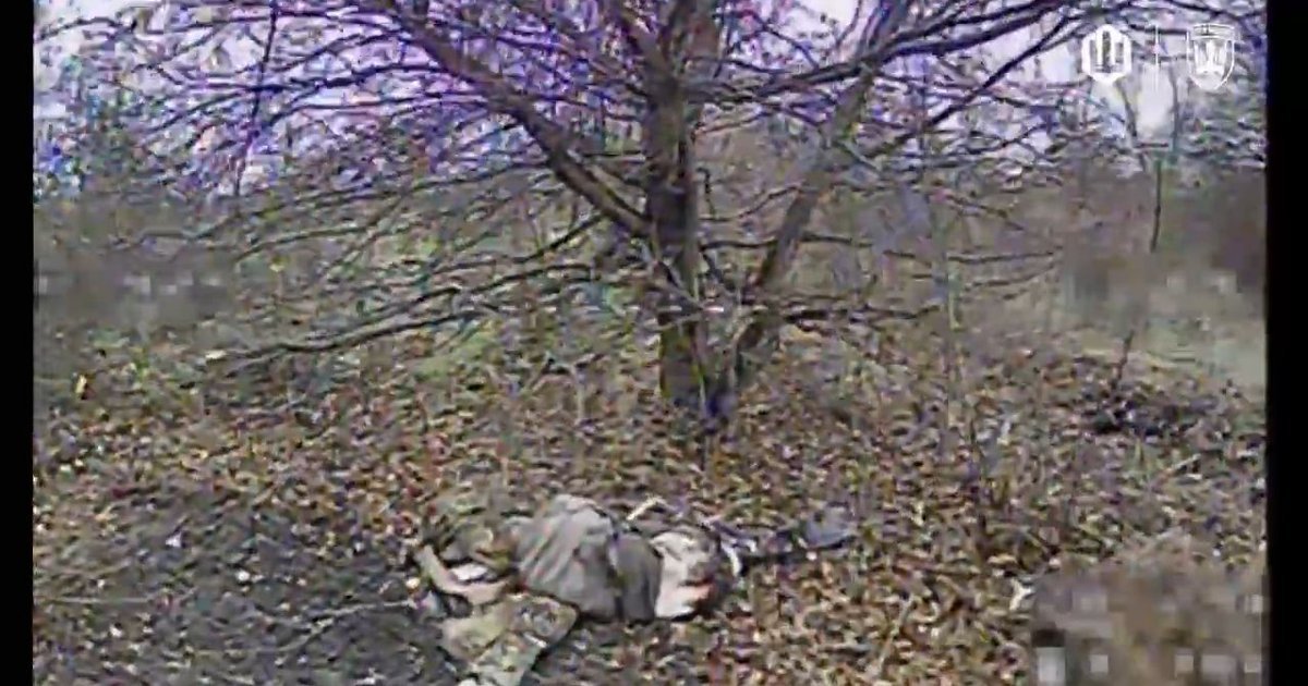 Ліквідований військовий РФ із розірваними штанами та голим задом так і залишився лежати під деревом.
