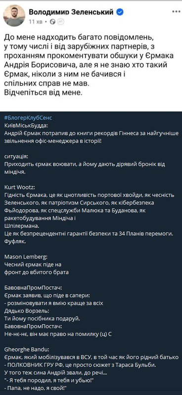 Нехай ще скаже,що ермак відсунув його повністю від виконання своїх обовязків у відносинах з ерефією перед вторгненням,та взяв все на себе і що з того вийшло.