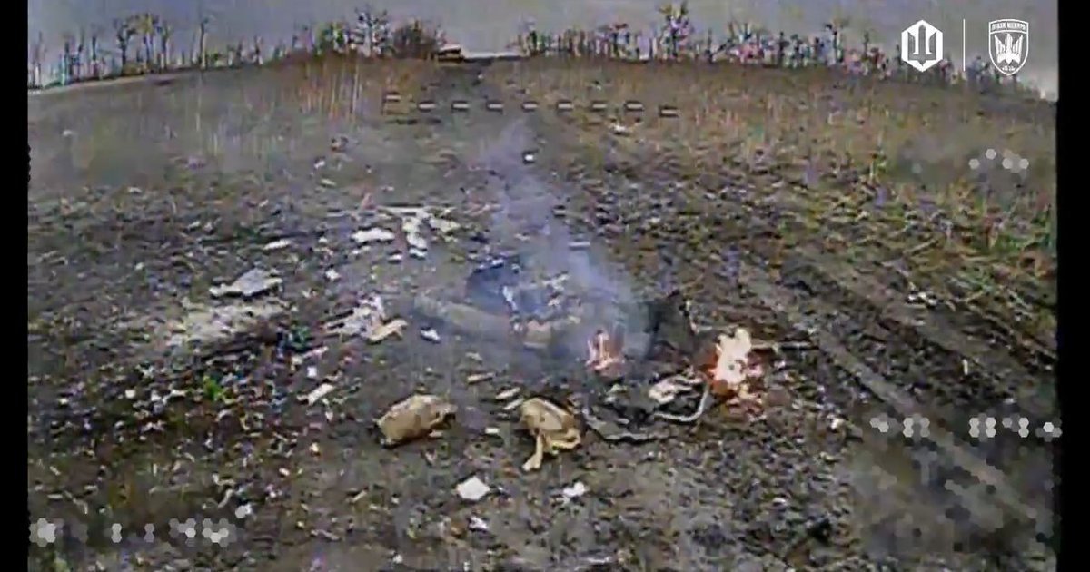 Унаслідок удару на кадрах видно підсмажене тіло загарбника, що так і залишилося лежати серед дороги.