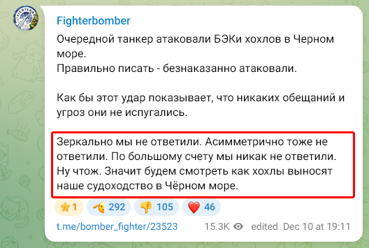 У середу, 10 грудня, морські дрони СБУ Sea Baby уразили в Чорному морі нафтовий танкер Dashan, що належить до "тіньового флоту" РФ.