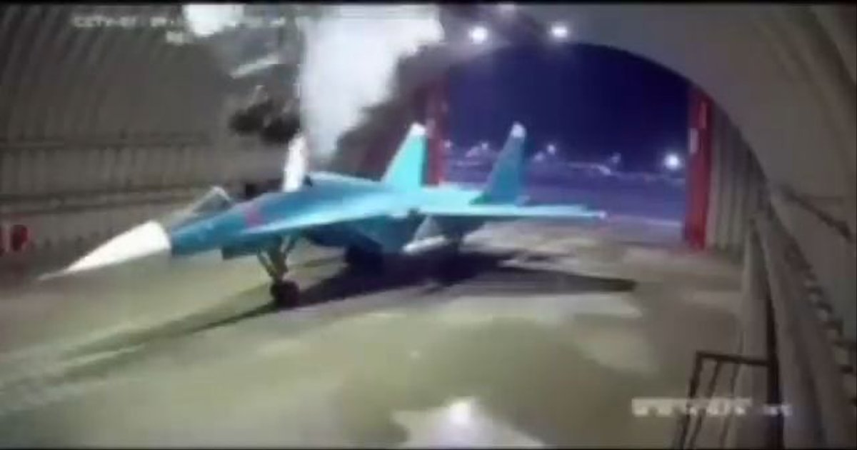У мережі опублікований відеозапис, на якому зафільмований момент несанкціонованого спрацювання механізму катапультування літака Су-34, що стоїть в ангарі.