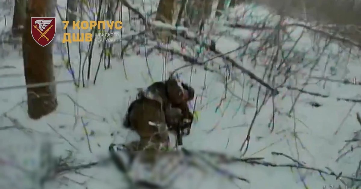 Російський піхотинець був ліквідований серед засніженого лісу Покровська бійцями 7-го корпусу Десантно-штурмових військ.