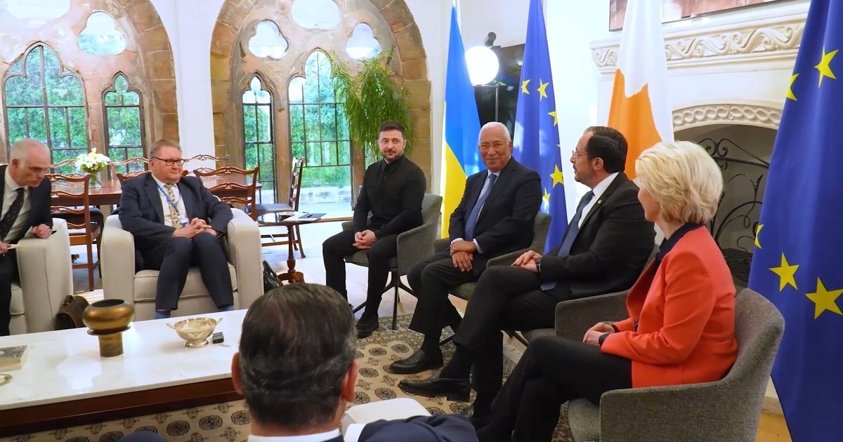 Президент Володимир Зеленський провів спільну зустріч із президентом Кіпру Нікосом Христодулідісом, президентом Європейської ради Антоніу Коштою і президенткою Європейської комісії Урсулою фон дер Ляєн.