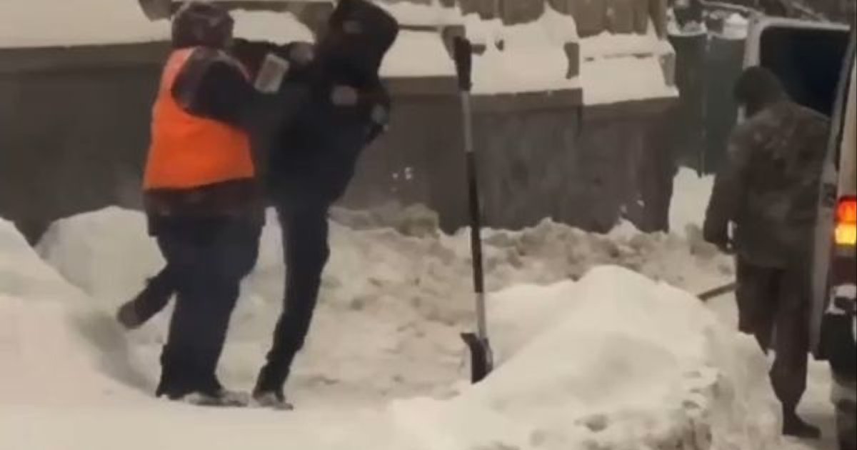 Поліцейська і комунальниця б’ються на вулиці засніженого Львова. ВIДЕО